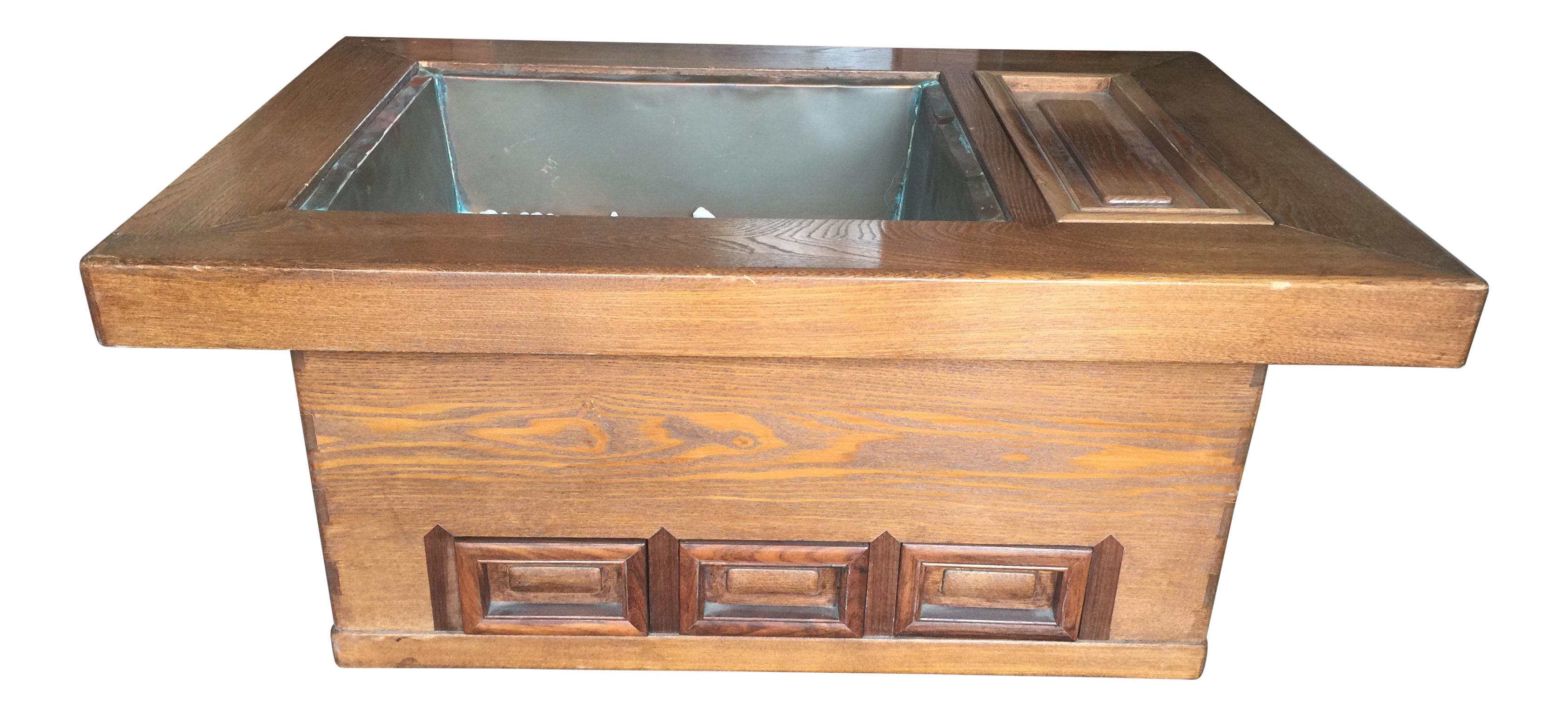 This storage coffee table is the perfect solution to all of your outdoor storage needs, and offers a place to keep drinks close and appetizers served while your guests enjoy your seating arrangement. Japanese dark wood grain hibachi coffee table with drawers. Larger upper compartment has clear glass lid, the smaller is wood. Vintage korean hibachi coffee table. Lancaster table & seating 30 x 48 recycled wood butcher block table top with espresso finish. 4.4 out of 5 stars. A mid century modern hibachi coffee table. Japanese, low table, kang table,household, solid wood, tatami, small table,sitting,small coffee table, tea table, window sill, customization orientalartmuseum 5 out of 5 stars (3) sale price $136.00 $ 136.00 $ 160.00 original price $160.00 (15%. Japanese table japanese art japanese hibachi irori stoves for sale natsume cypress wood coffee tables for sale lounge sofa. After the holidays, we still have the griddle set up on our coffee table, and its been the best way to get me to eat meat and veggies. Category 20th century card tables and tea tables. Japanese hibachi coffee table, a glass top sits above copper lined and two pits either side, great for showcasing small collectors items. A japanese hibachi coffee table constructed from elm.